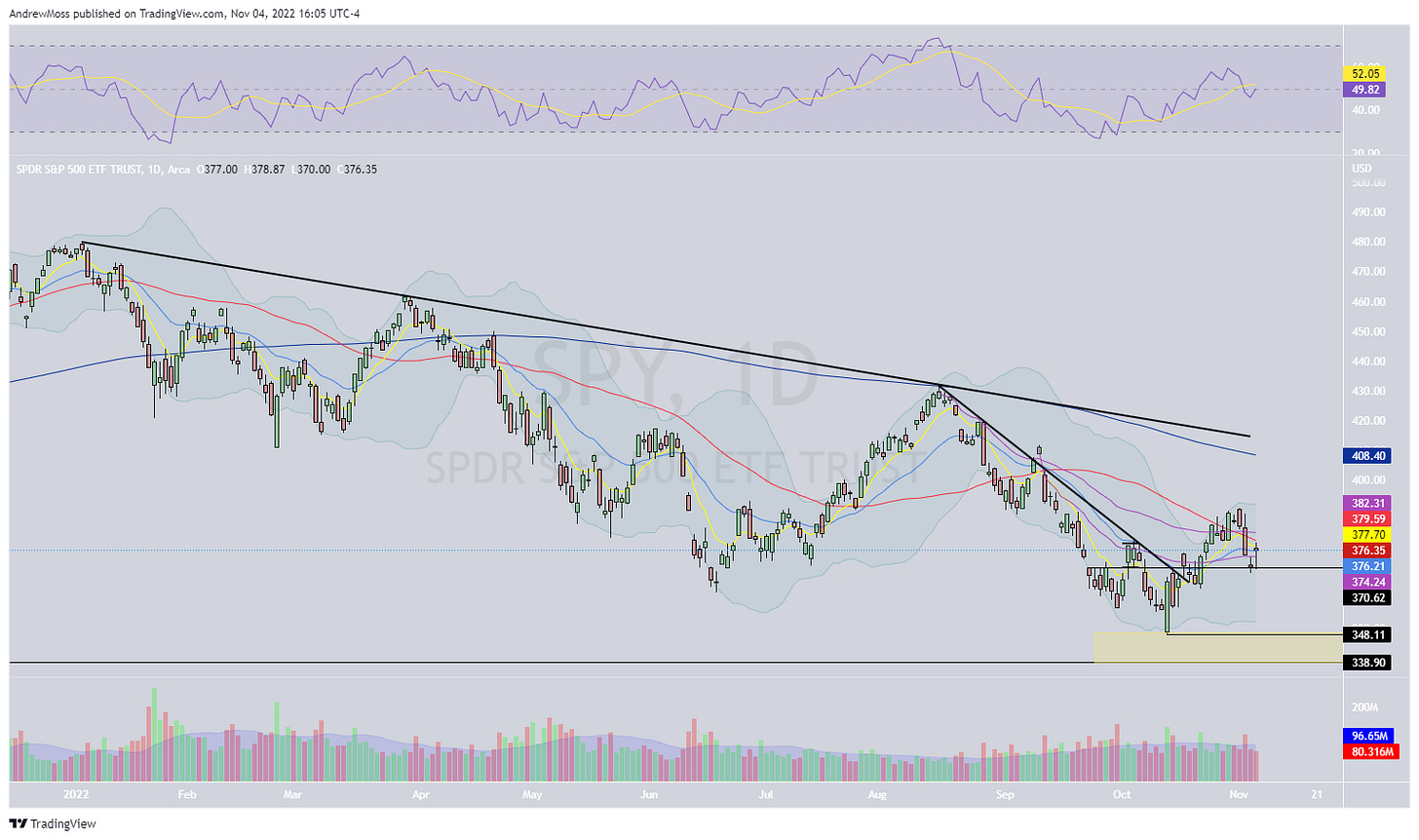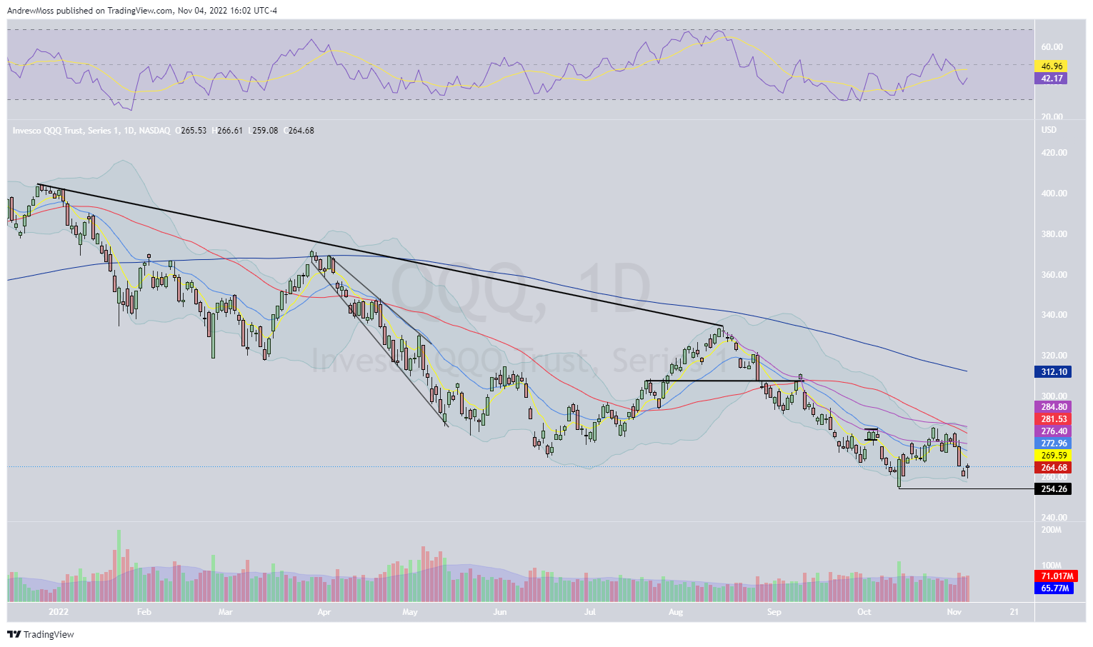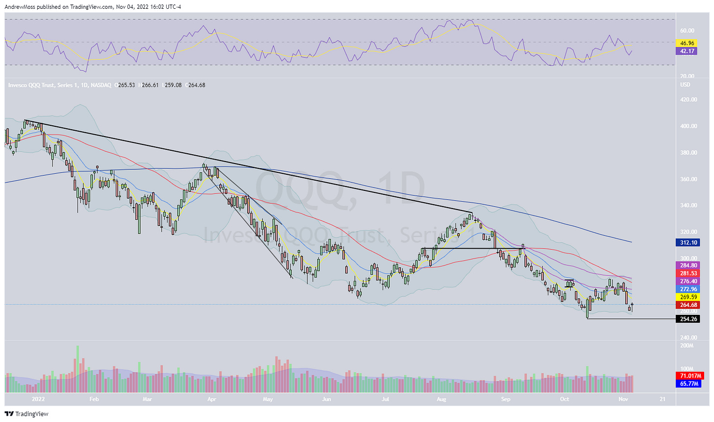 As for $QQQ, a resumption of strength in big tech would likely drive the overall market higher. That would be a major shift from this point and seems very unlikely given the interest rate situation.