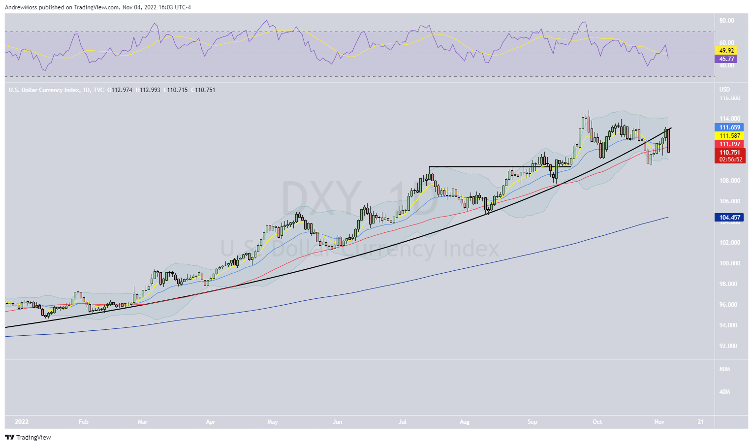 $DXY - solid retest and now resuming the move lower. That's what we want to see. It looks like a lower high. Now we need to get a lower low for confirmation.