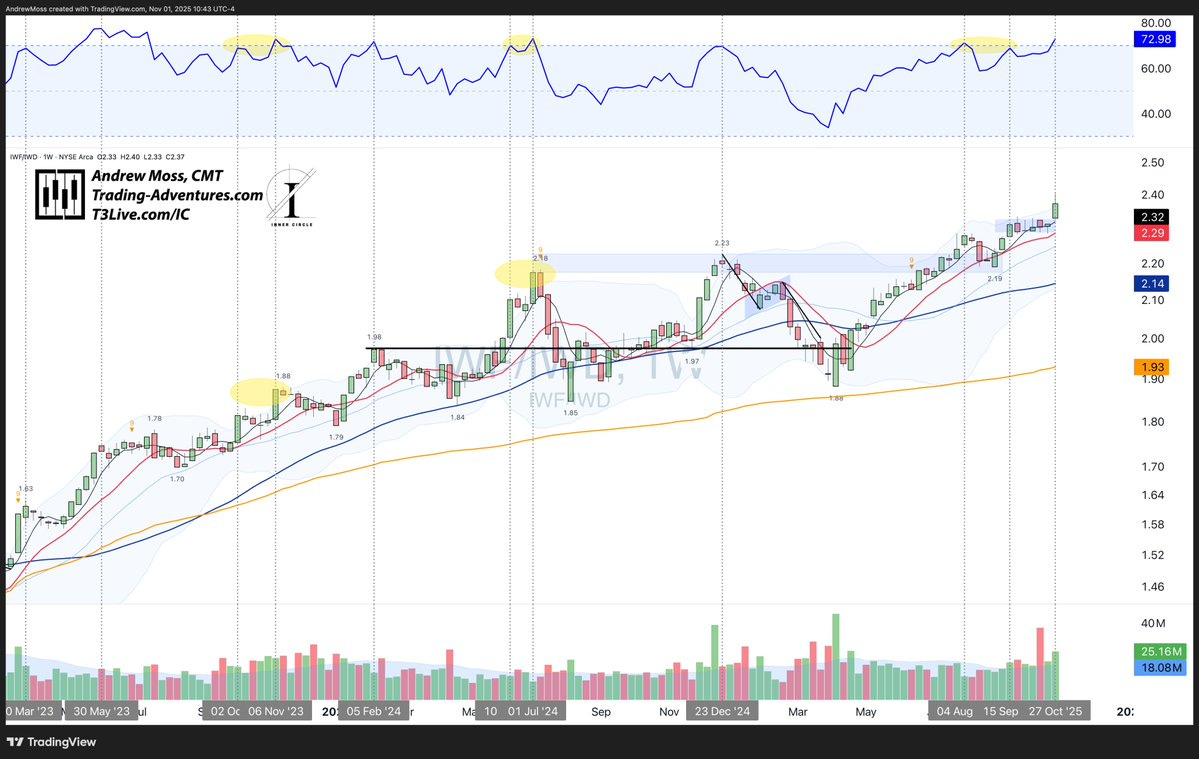 IWF / IWD Growth / Value with a stellar breakout after many weeks of tight consolidation.