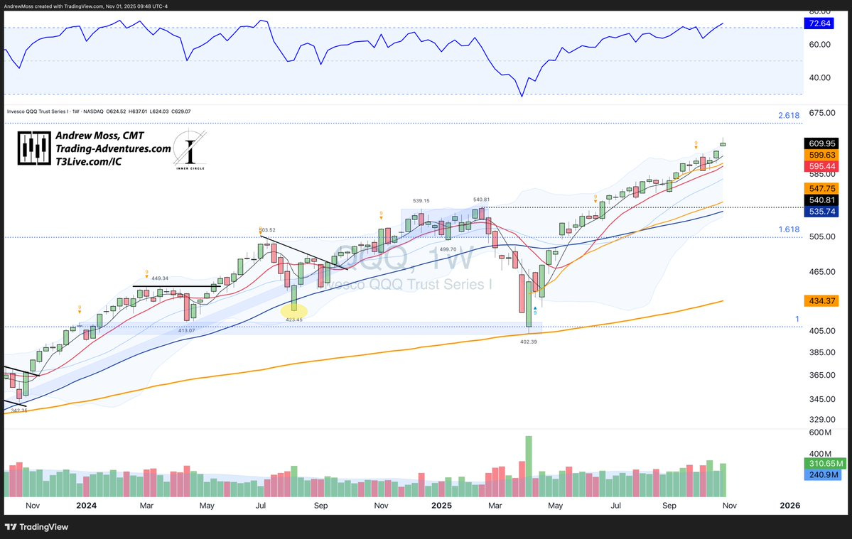 Short-term, we’re seeing breakouts and momentum in relative strength ratios (IWF/IWD, XLY/XLP), suggesting a continued “risk-on” appetite.