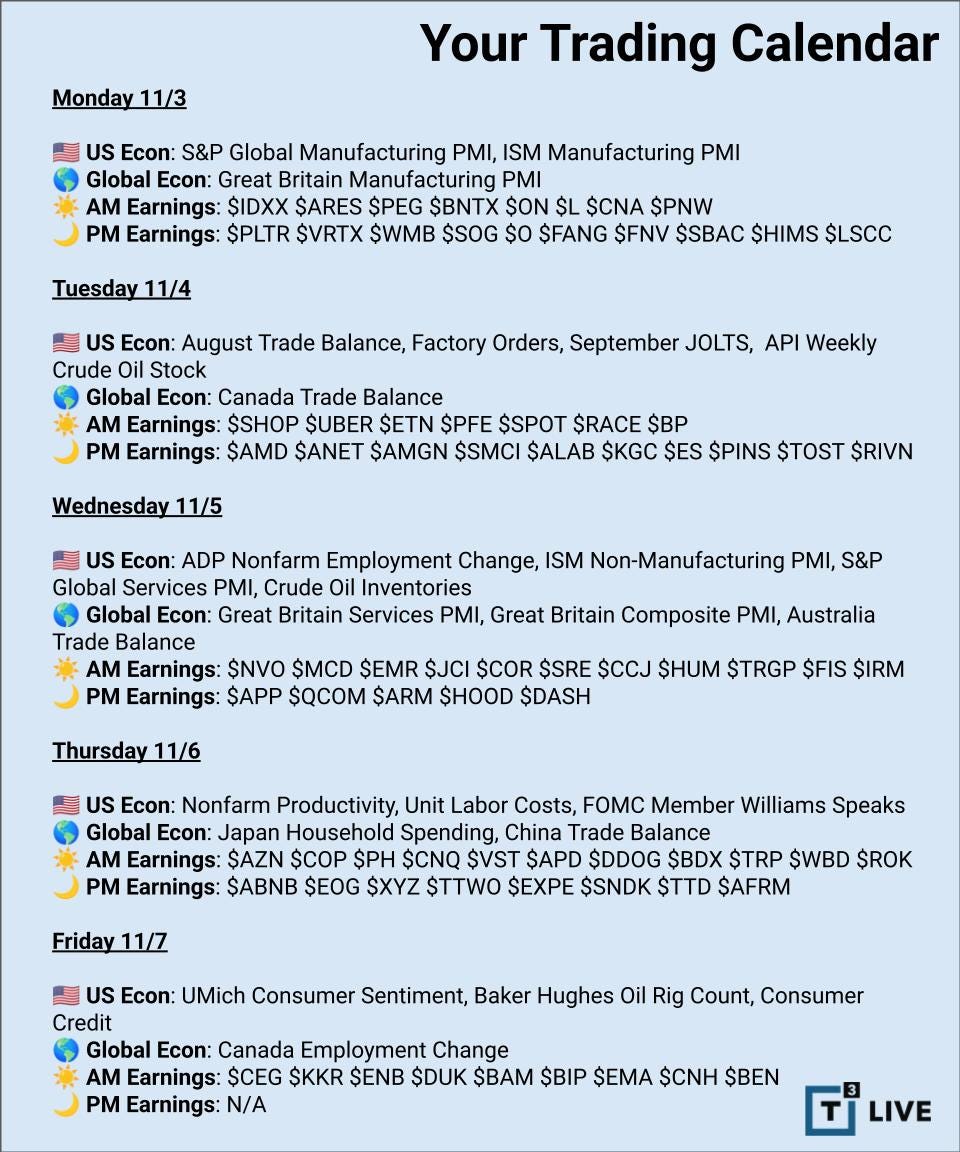 Plenty of catalysts on deck. A heavy mix of econ data plus a fresh wave of earnings could challenge this market’s recent momentum.