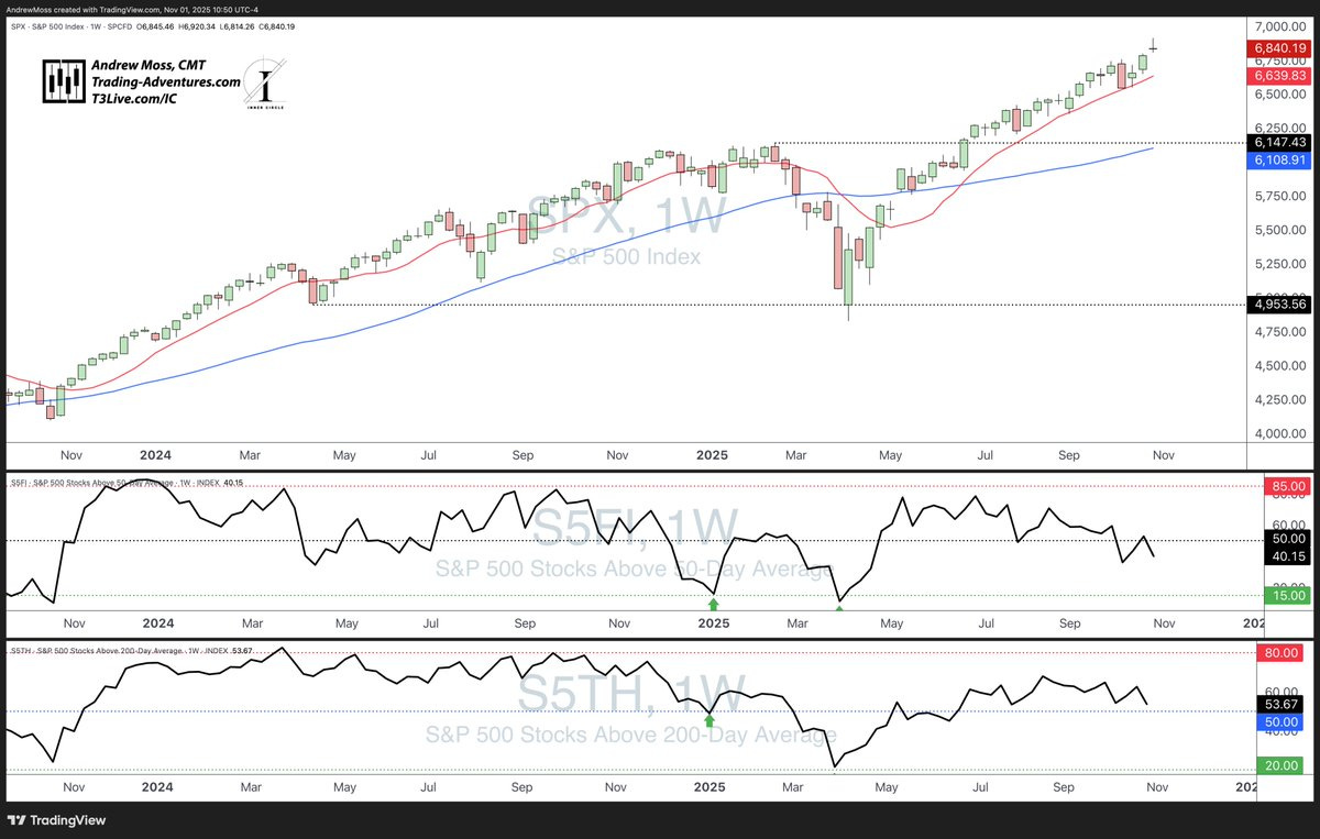 However, internal breadth indicators are lagging, with fewer stocks above key moving averages — a caution flag that not everything is participating.