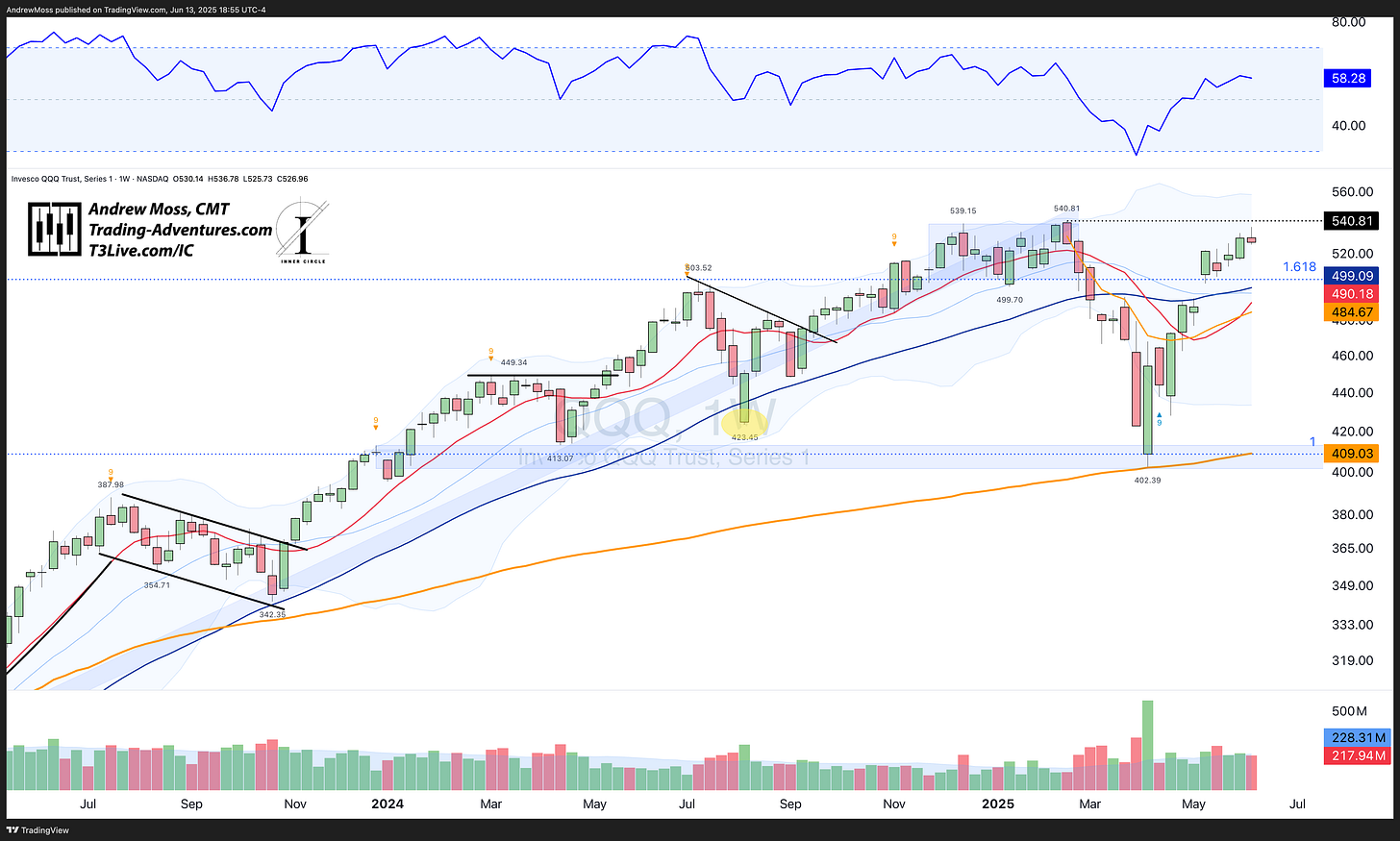 As noted in Thursday’s Market Update, QQQ and SPX have been tracking closely — same playbook, same price action.