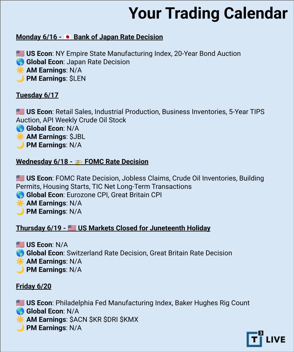 Next week’s calendar is light, but we do have an FOMC Day on Wednesday, followed by a market holiday on Thursday for Juneteenth.