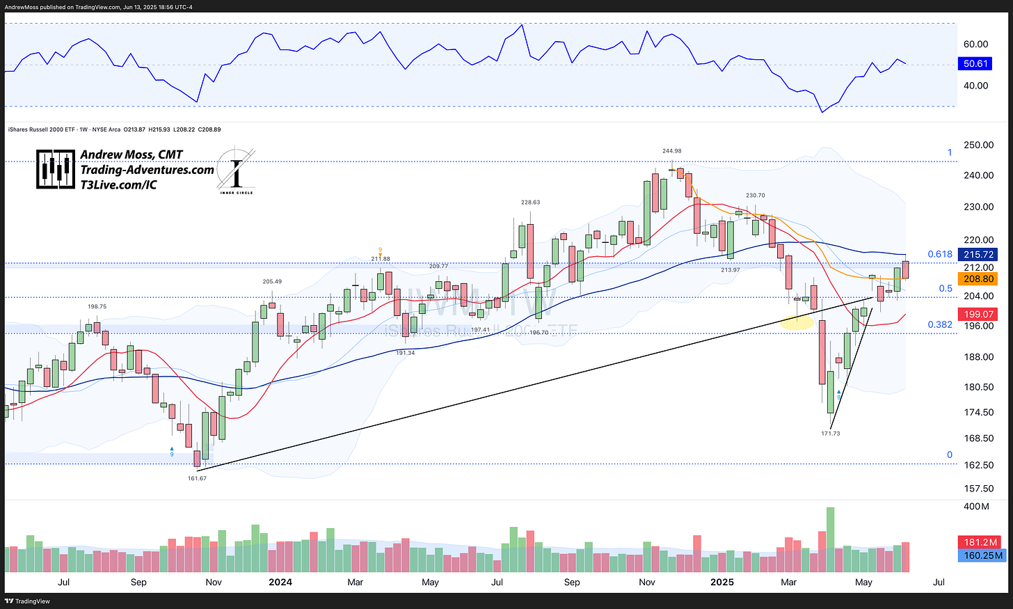 IWM touched its 40-week MA before retreating to the pivot high AVWAP🟠.