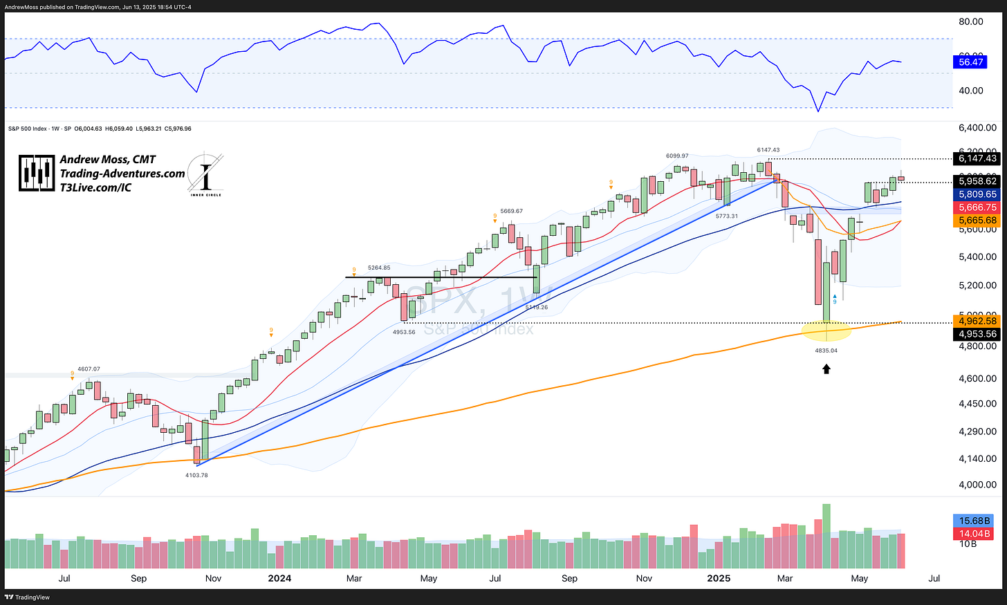 The index pushed higher early in the week, then faded with headlines from Israel and Iran. But the selling was short-lived, and SPX held above the key 5958 pivot.