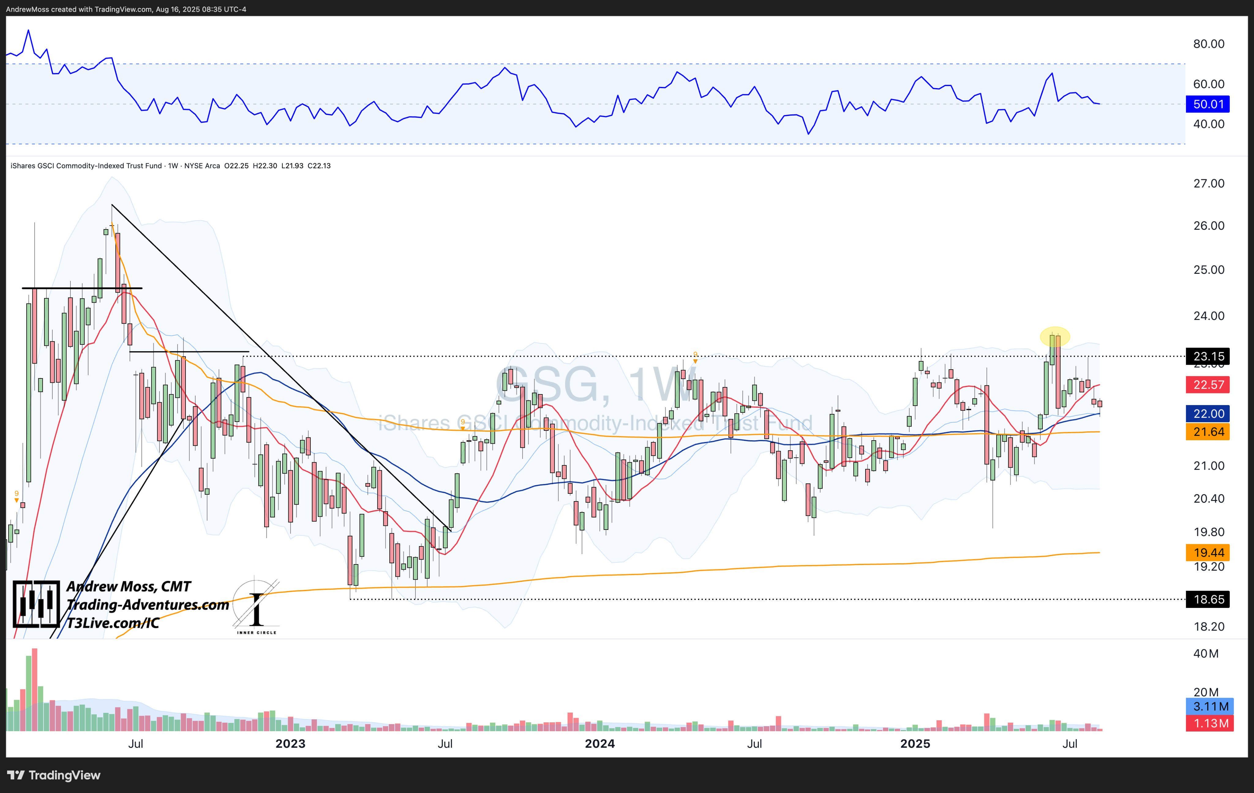 Flat. On the 40-week MA. RSI in no-man’s-land.