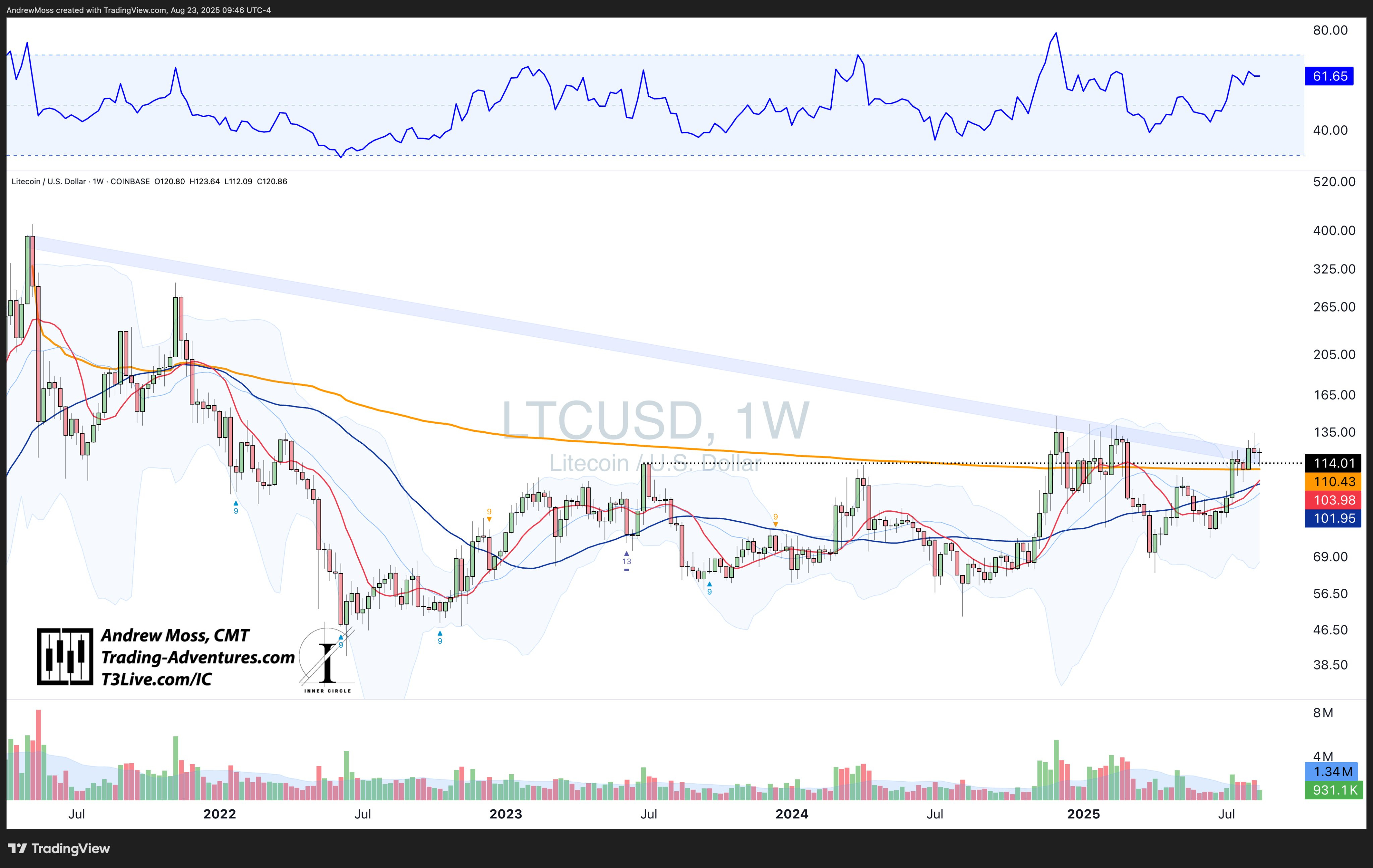 LTC has an incredibly bullish-looking chart, but similar to BTC, it’s having trouble getting moving.