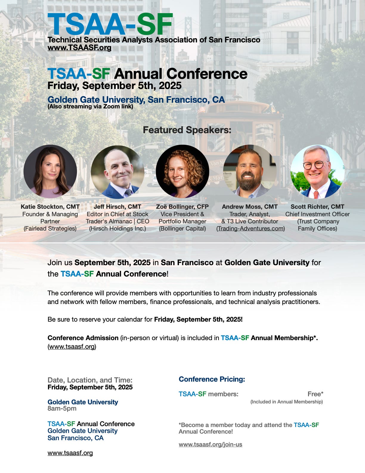 This annual gathering brings together some of the top minds in technical analysis. I’ll be joining Katie Stockton, Jeff Hirsch, Scott Richter, and Zoë Bollinger.