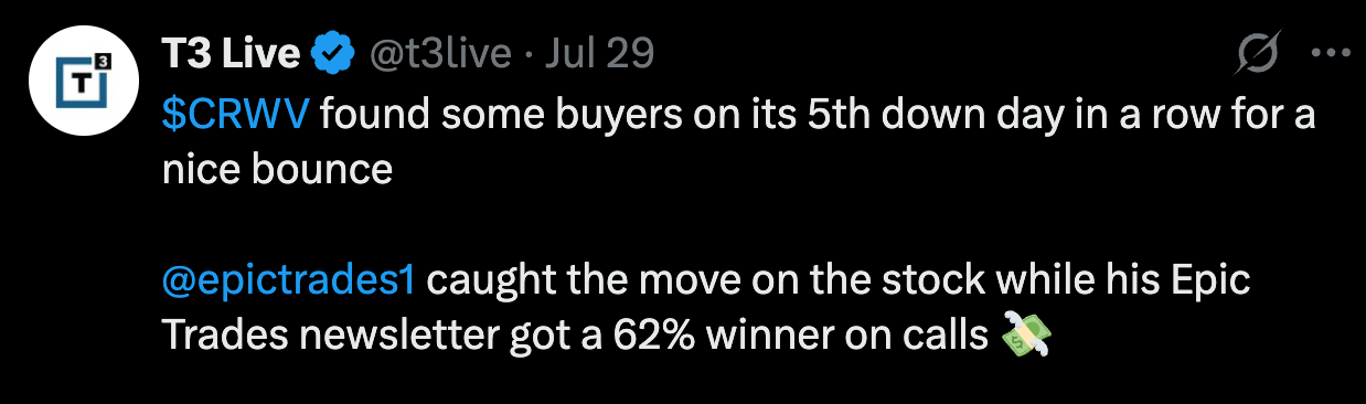 Recent winners include CRWD calls for a quick 29.9% gain, and CRWV calls for +62.5% in ONE day!