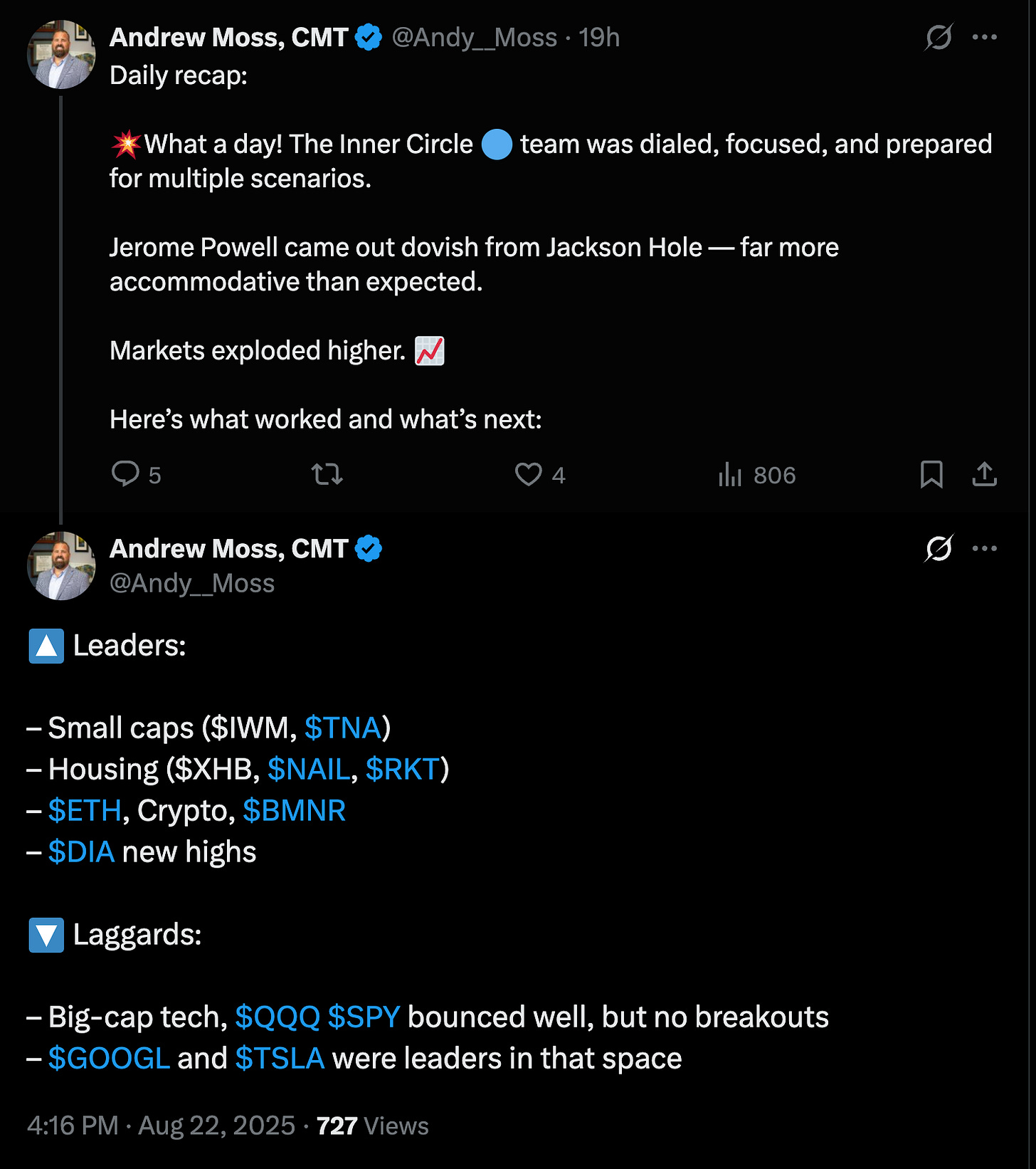 Real-time trade ideas and insights, providing actionable trading insights focusing on options trades with short-term horizons, aiming to capitalize on weekly market movements.