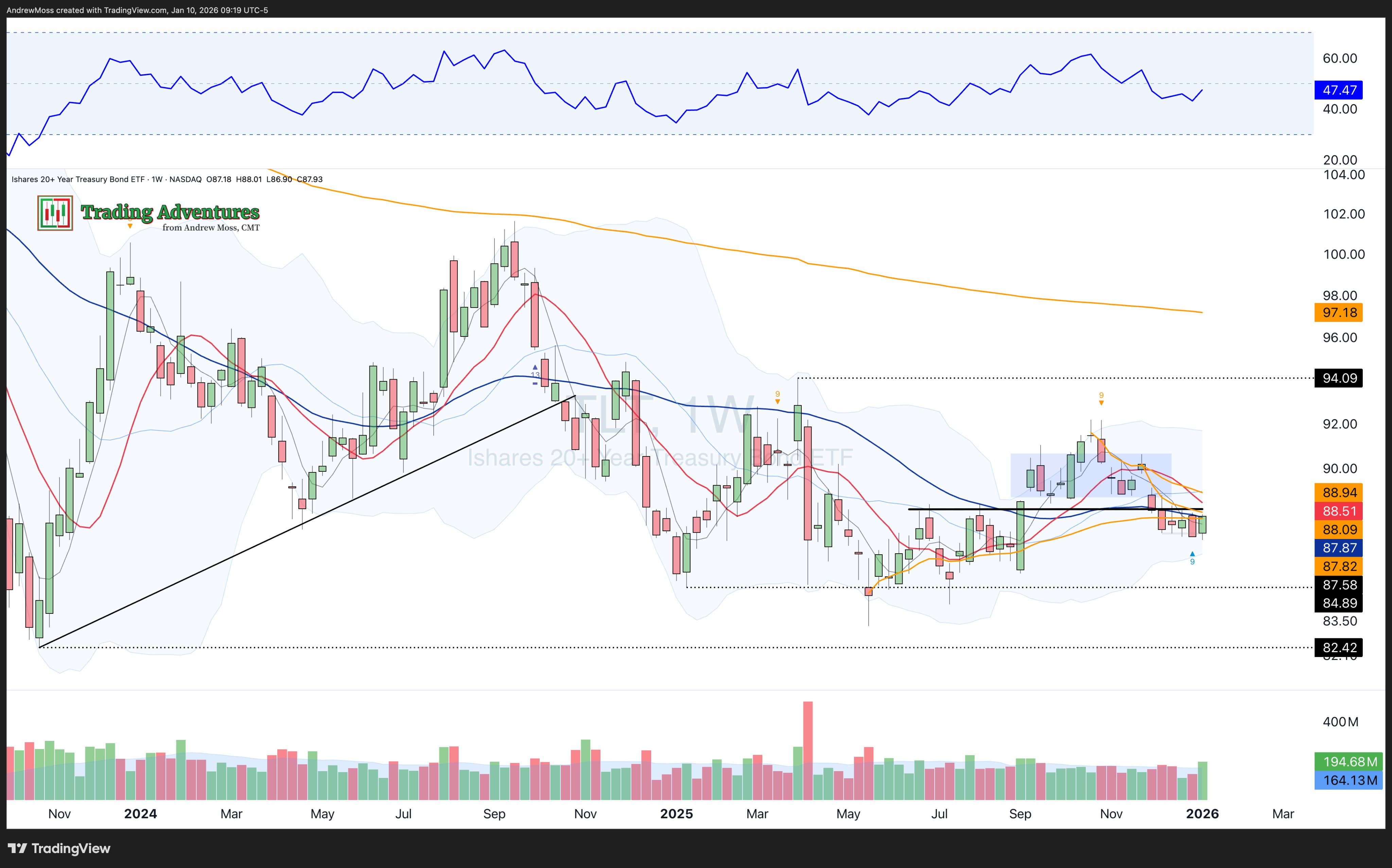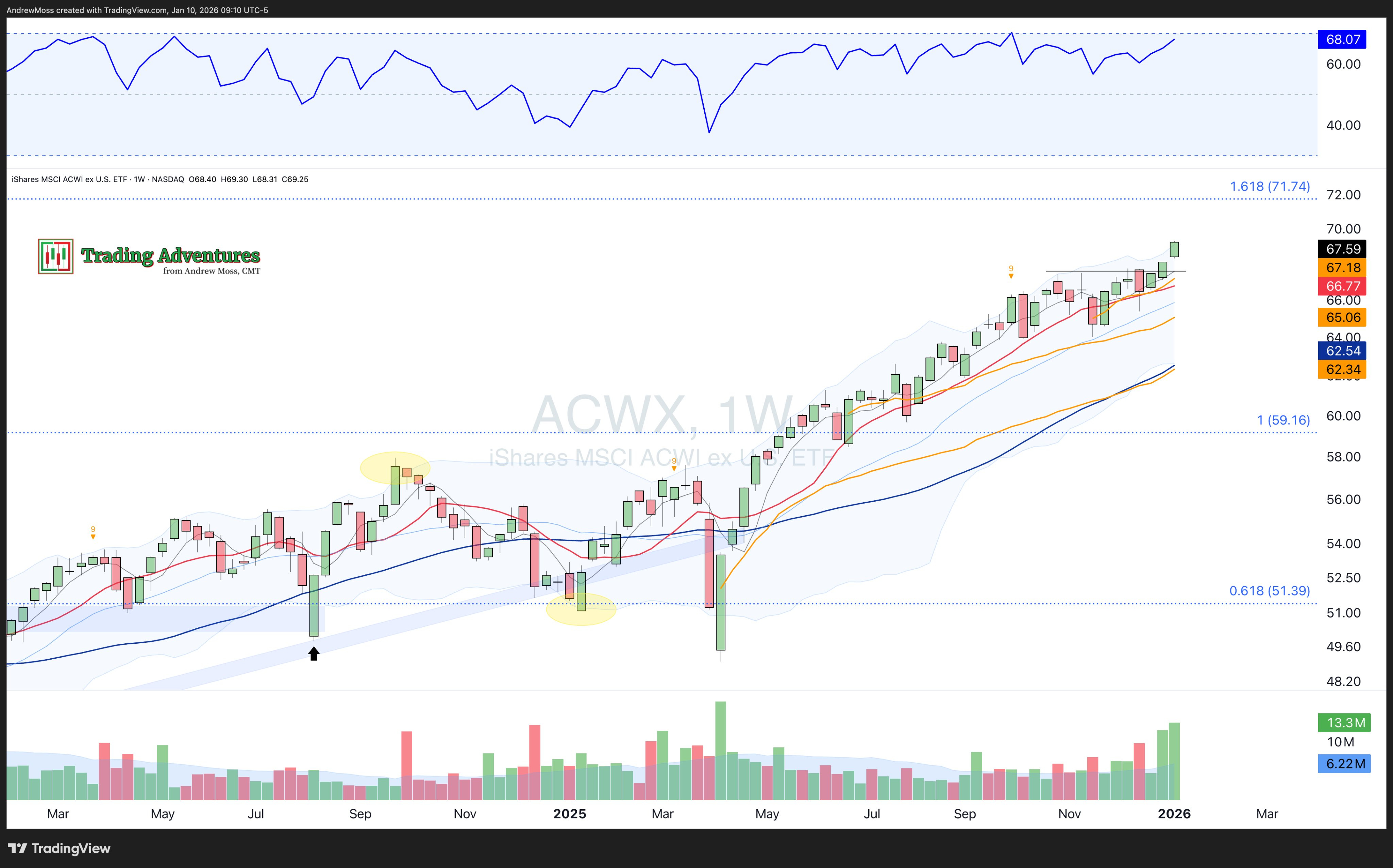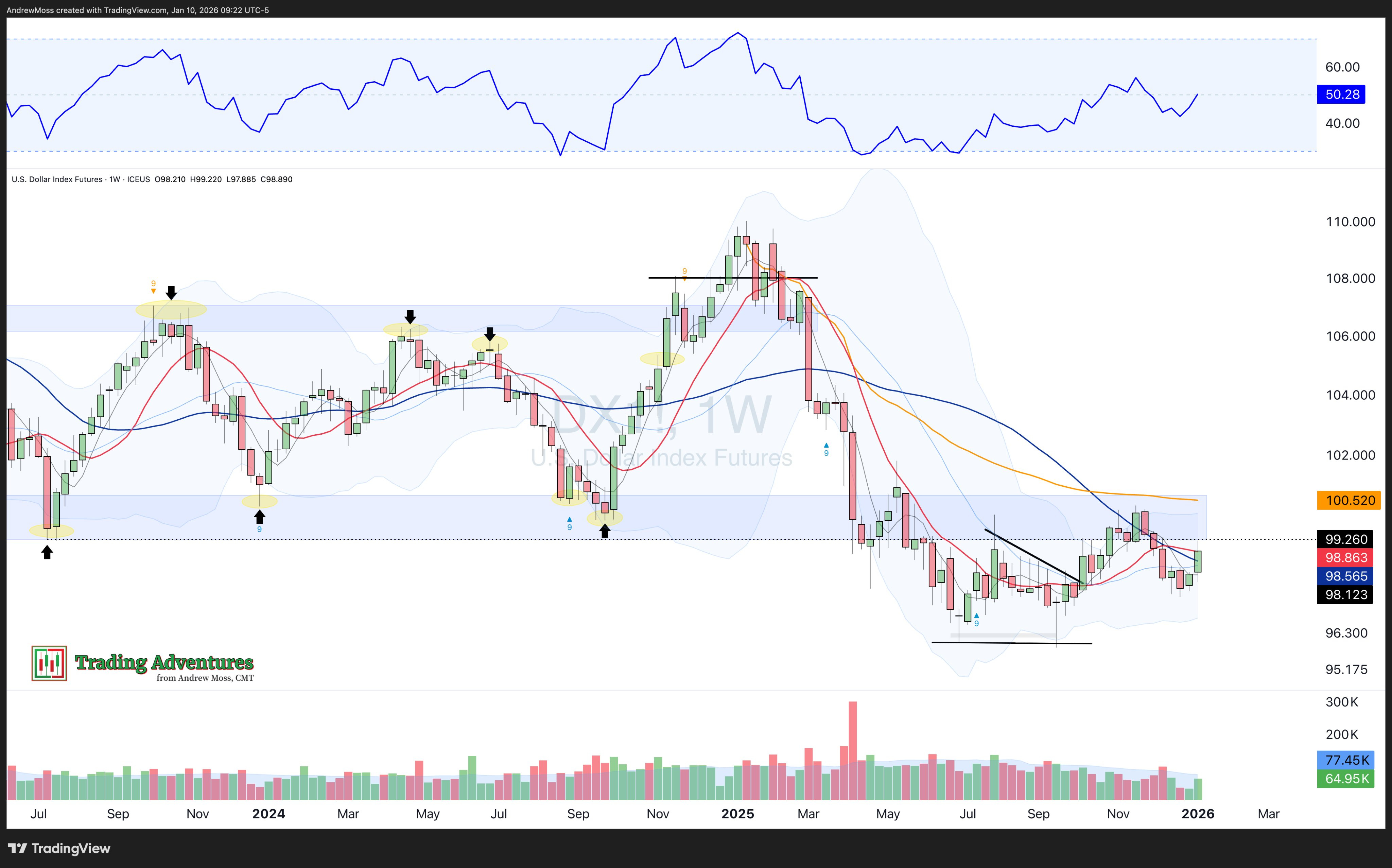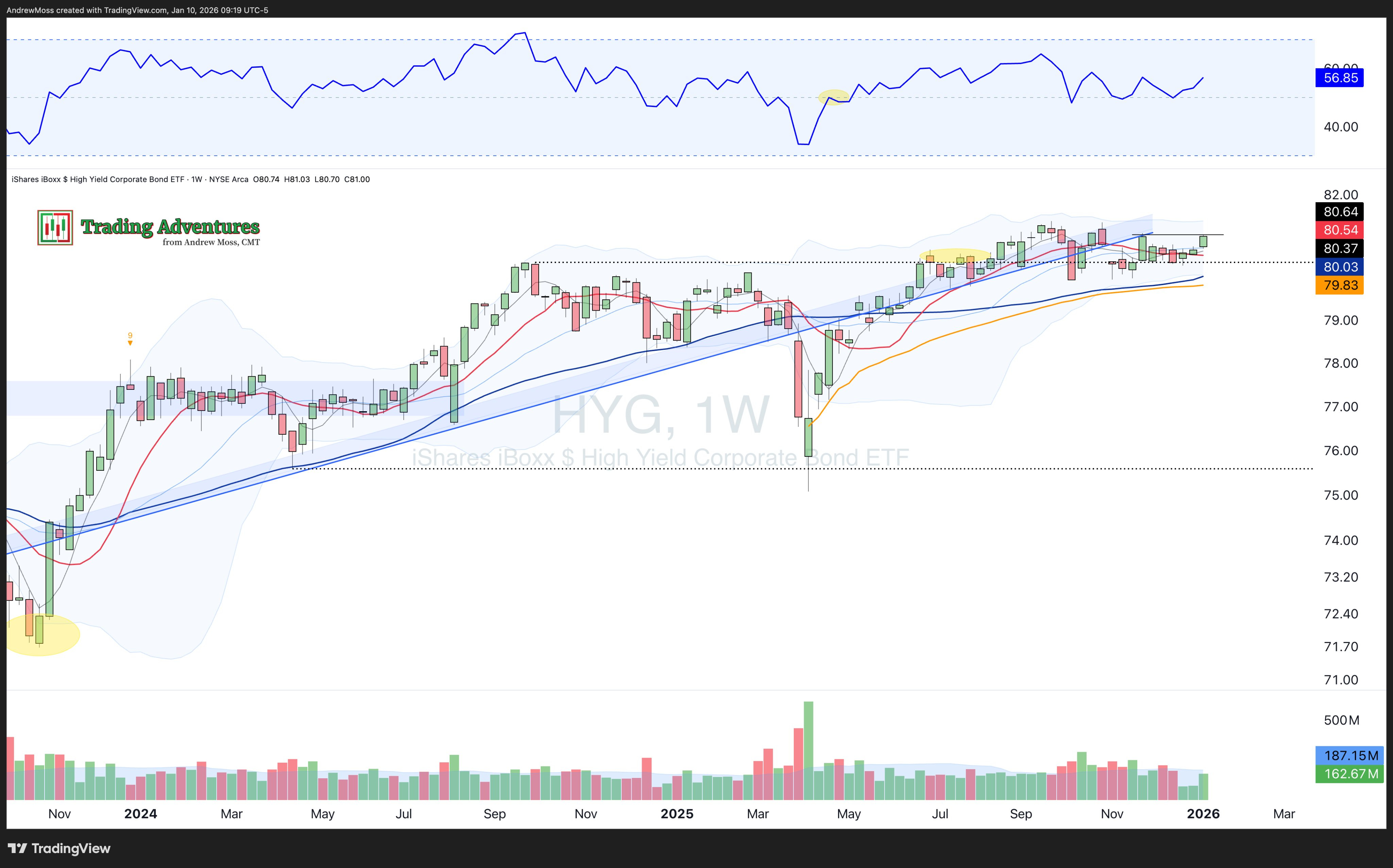 IWM delivered a powerful start to the year, jumping +4.6% from last week’s close — a textbook January Effect in action.