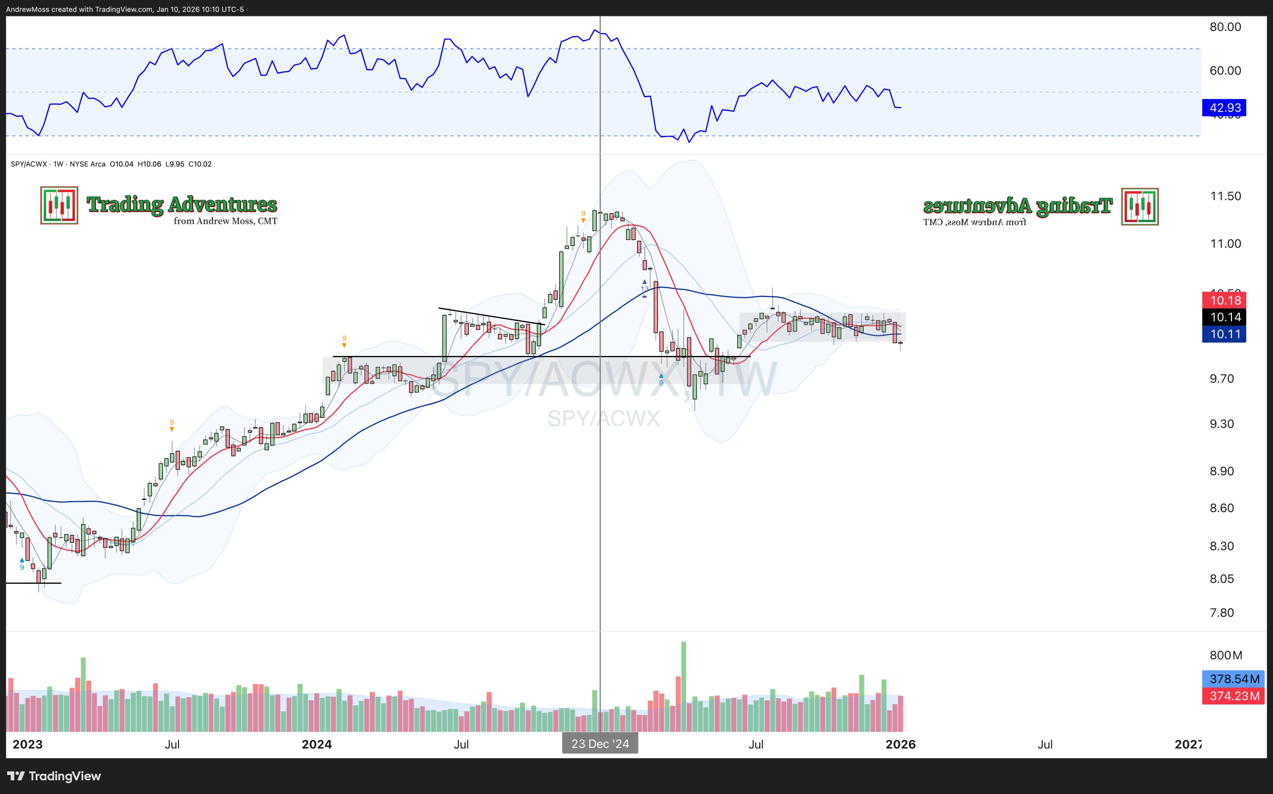 SPY / ACWX: Starting to look like a mirror image, possibly forming a head & shoulders