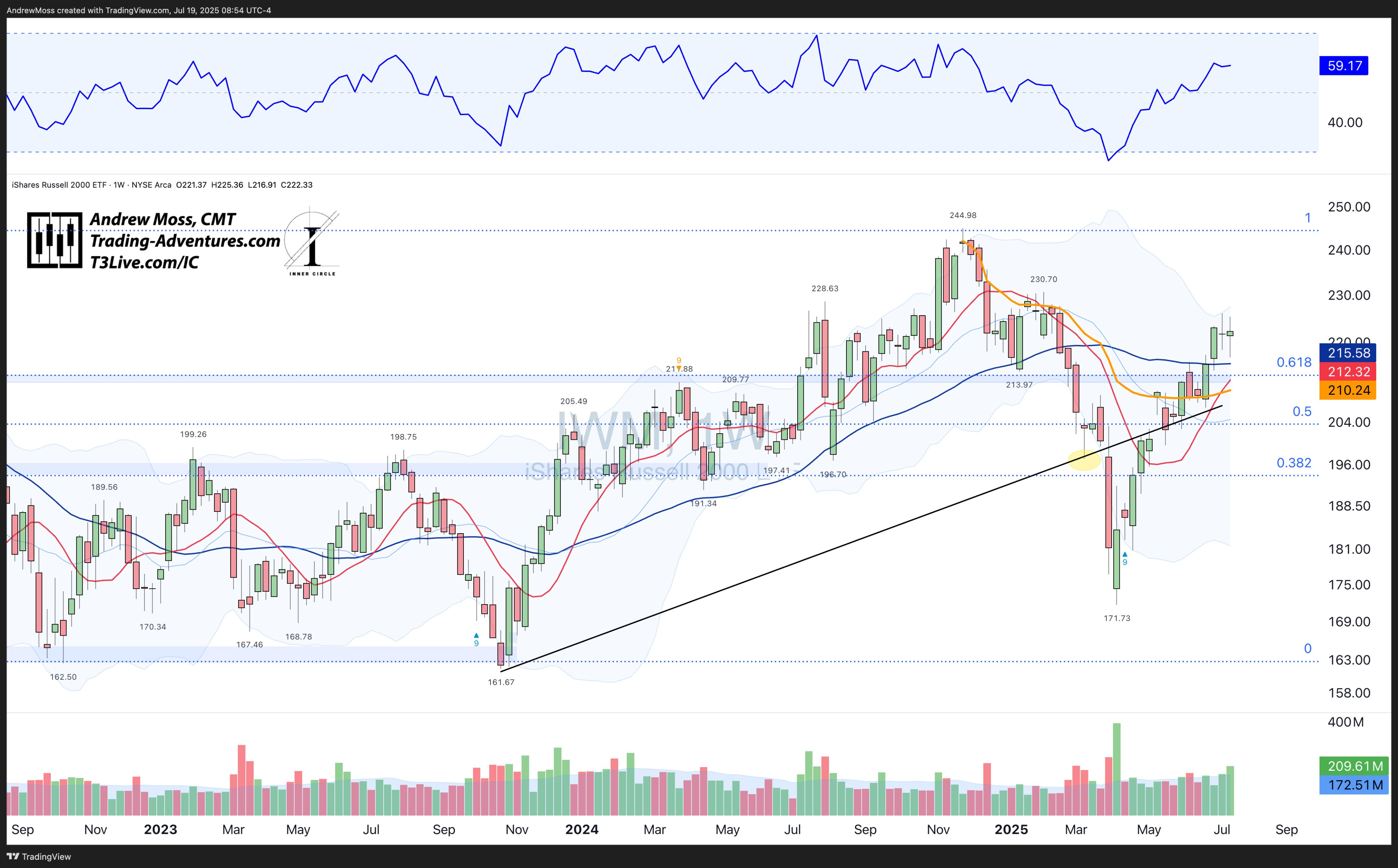 Small caps have been a bit more erratic lately, but the chart still leans constructive.