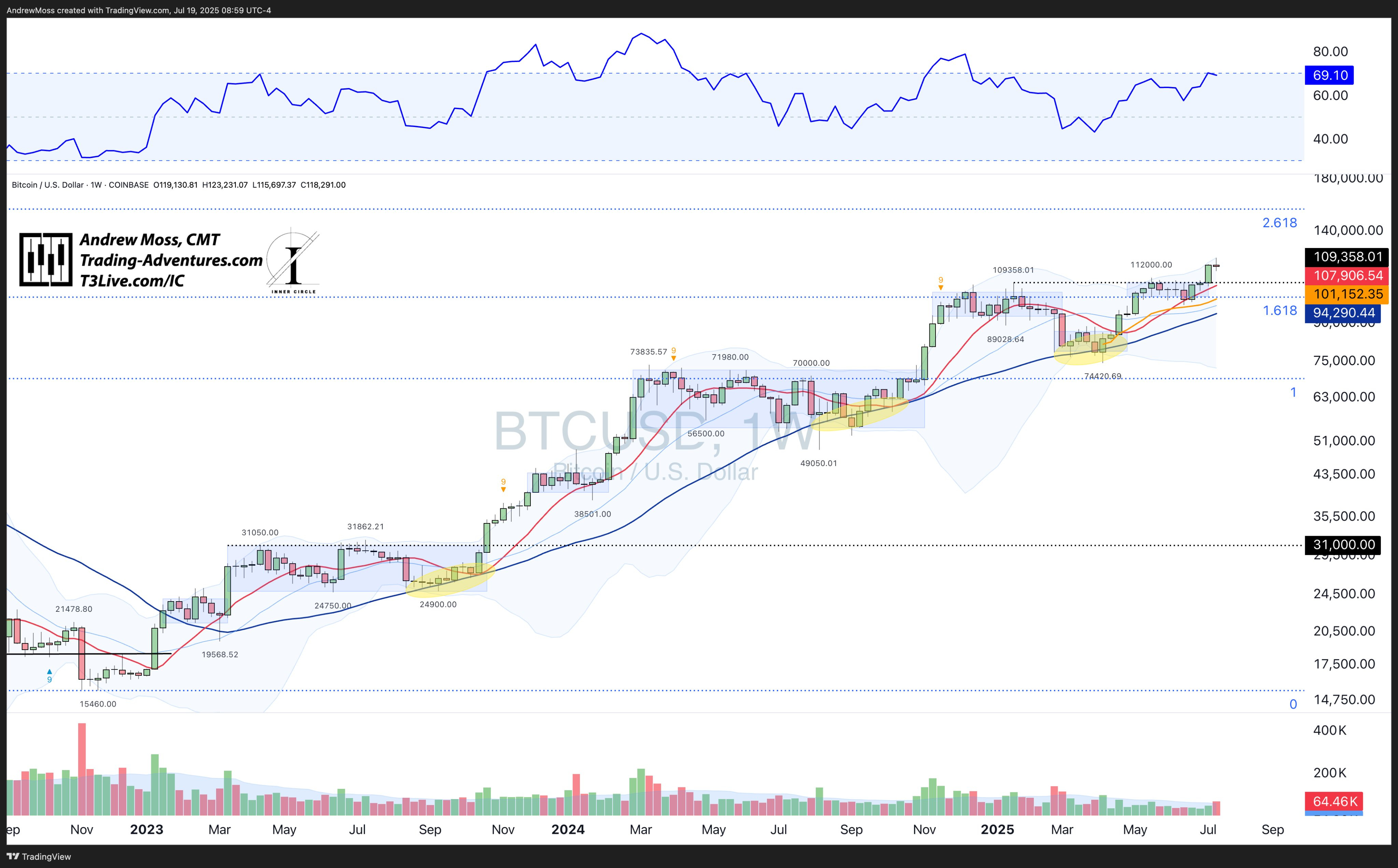 Bitcoin made a push to $123,231 this week — a new weekly closing high.