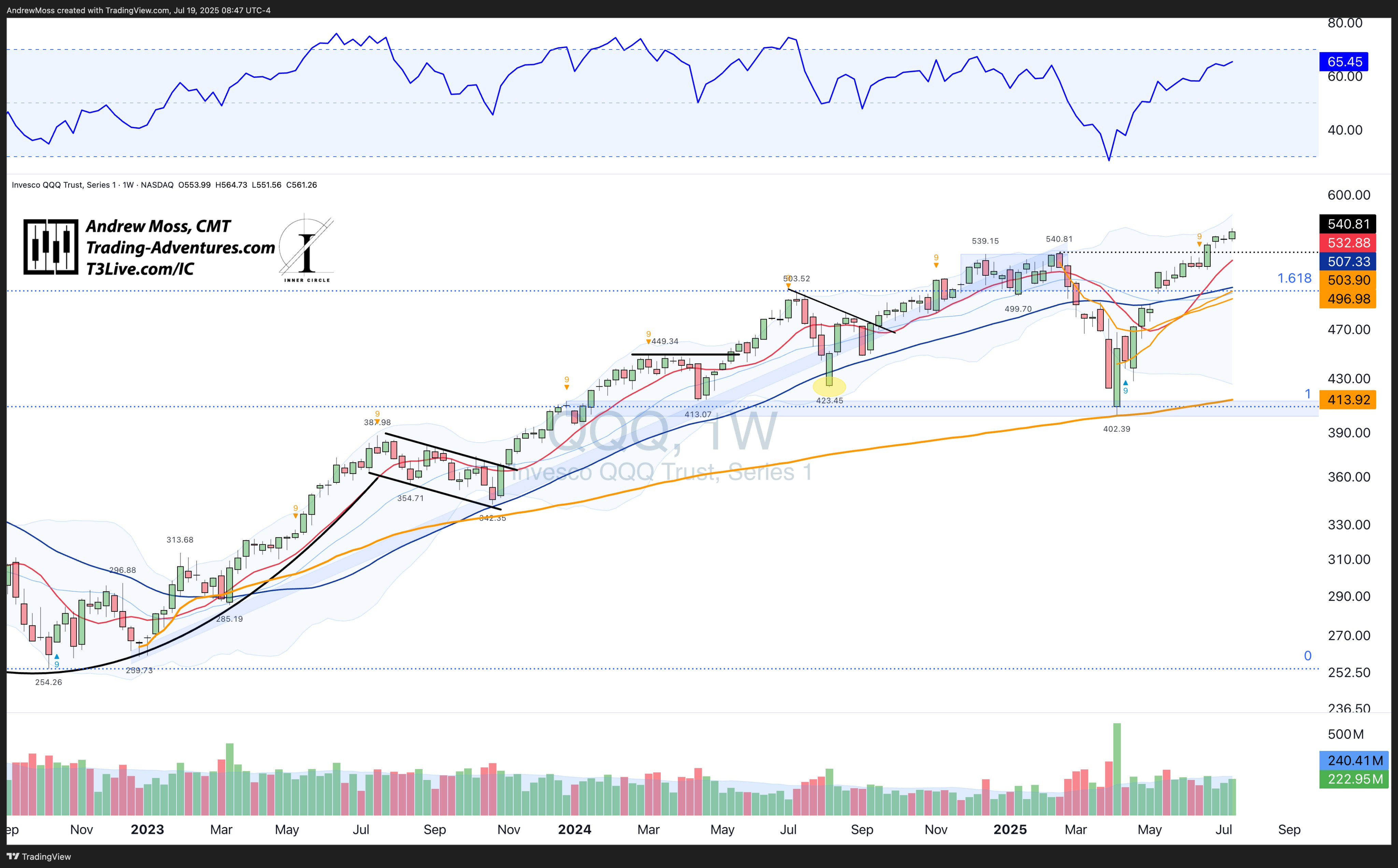 Another big week of price expansion — even with mega-cap earnings still ahead and seasonality looming. SPX, QQQ, and Bitcoin all pushed further into blue-sky territory while market breadth and sector leadership stayed mostly intact.