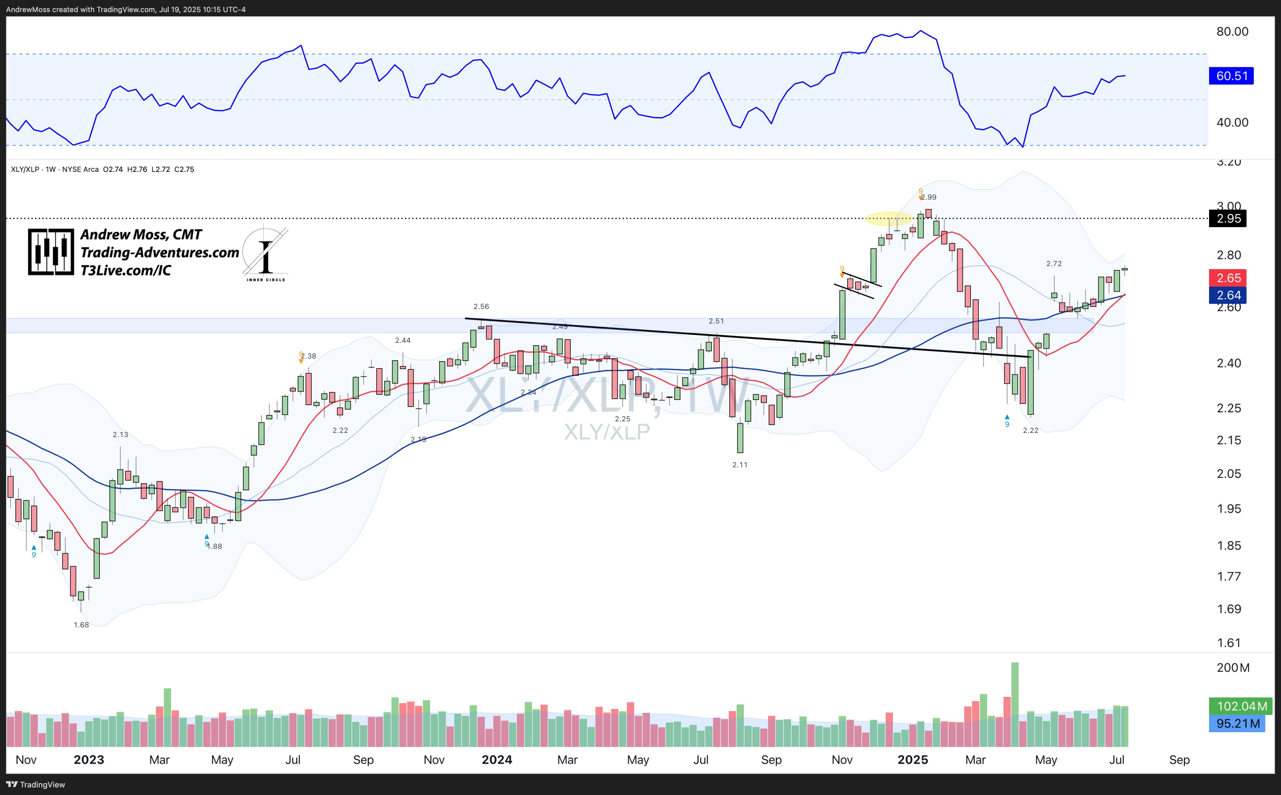 XLY vs. XLP remains strong. Consumers are still spending, for now.