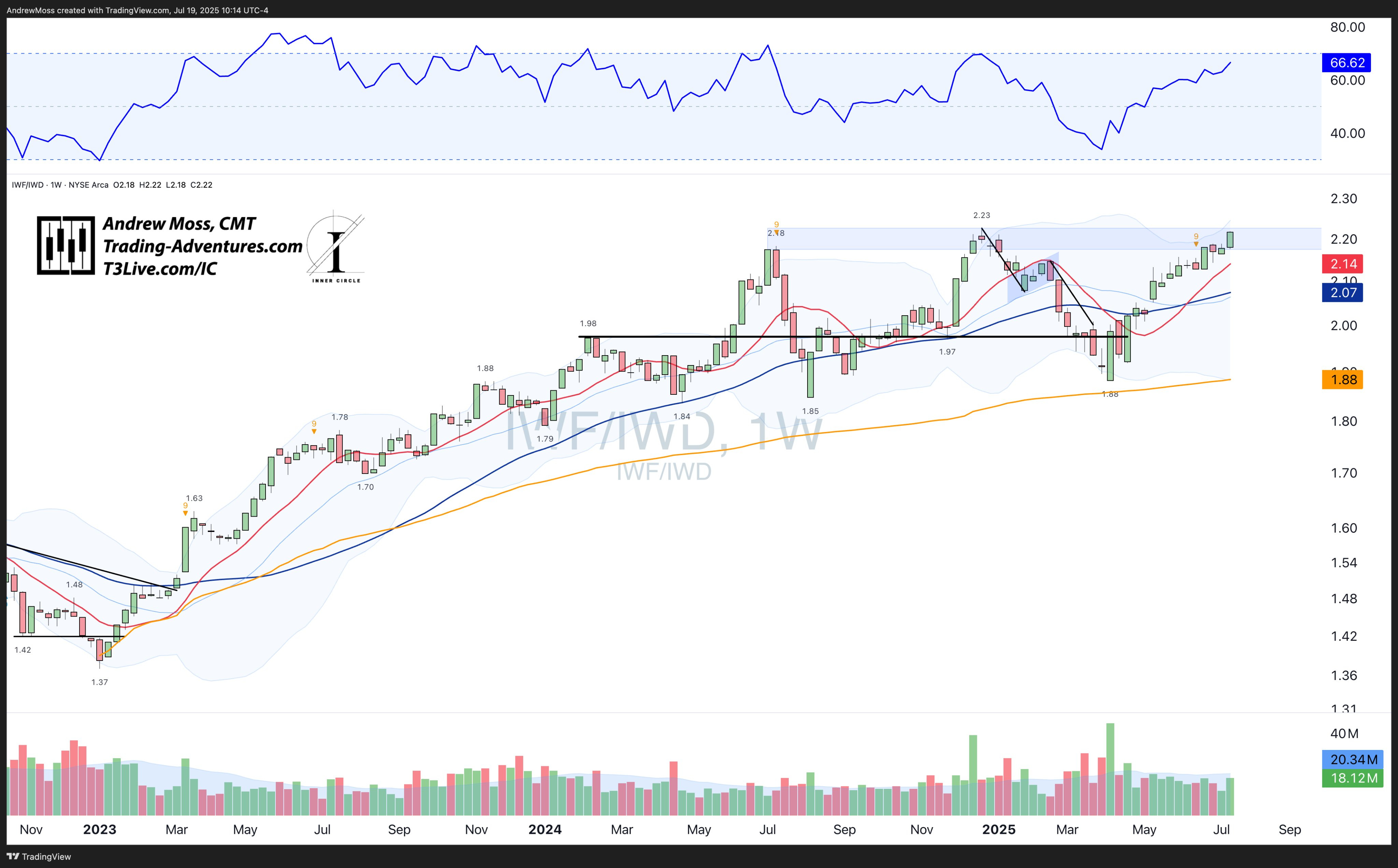 IWF vs. IWD is pushing toward a breakout — Growth continues to lead.