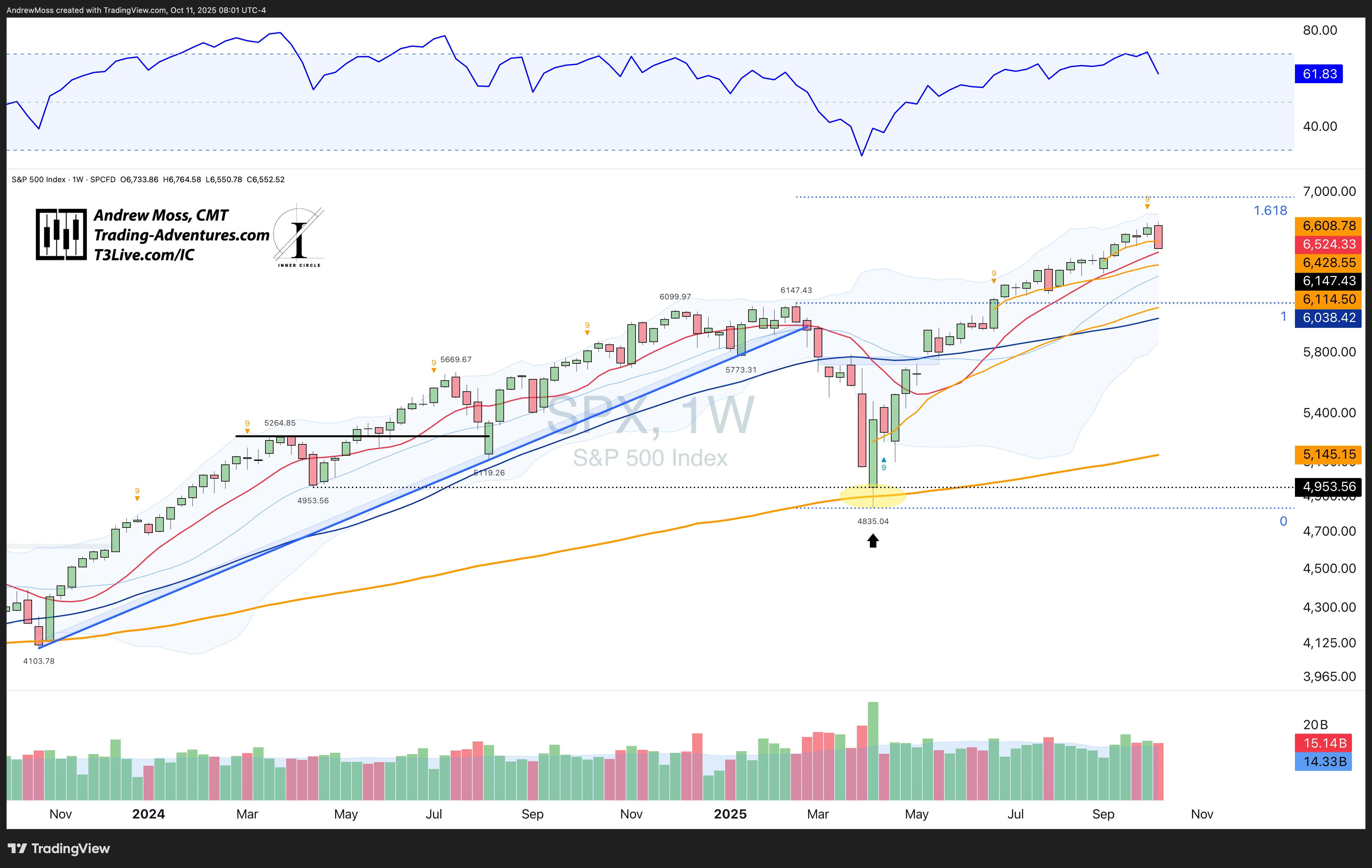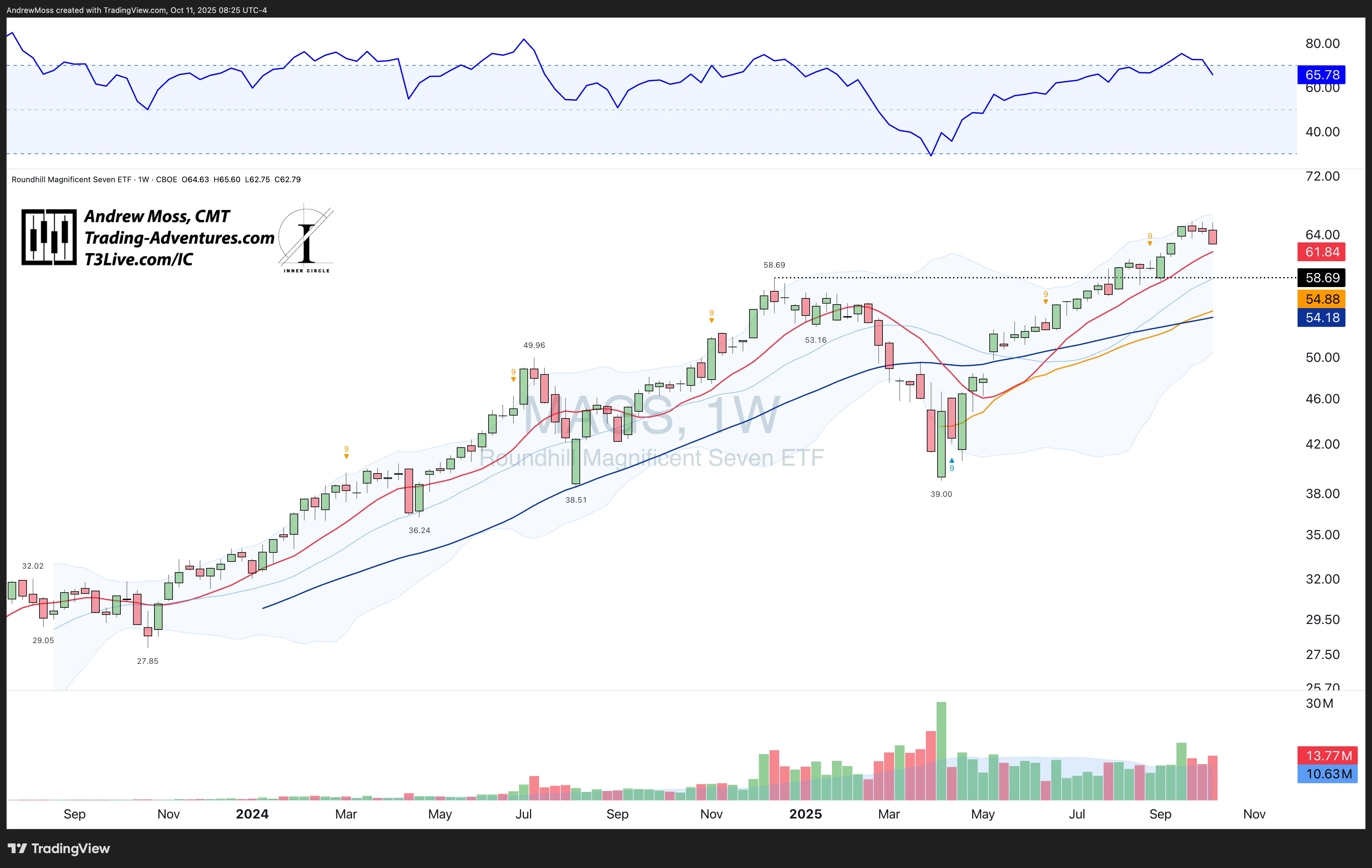 Weekly momentum divergences (MAGS, SPX) bear watching; can resolve through time as much as price.