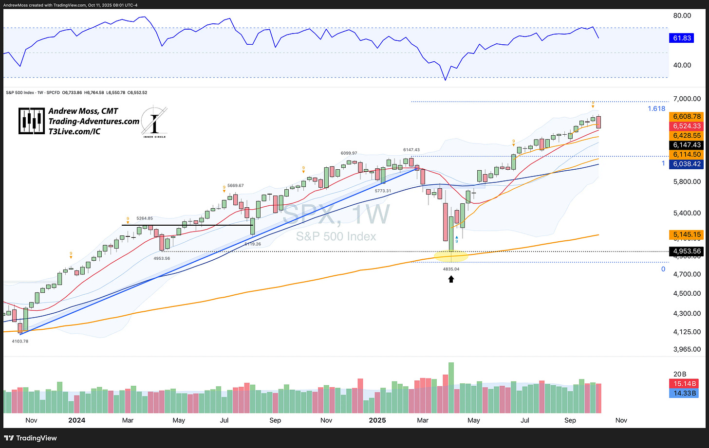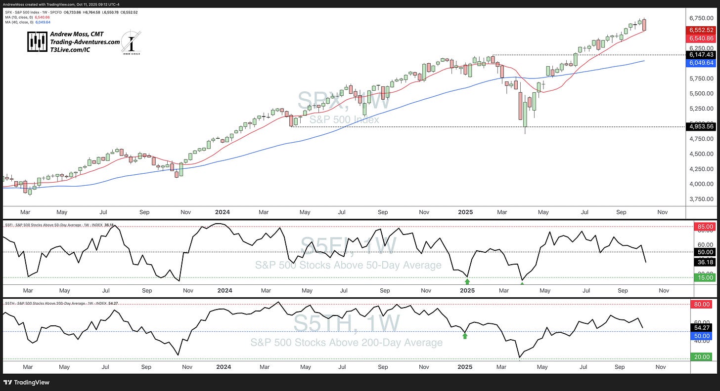 S&P 500 (SPX): A big outside reversal candle taking it from new highs to down nearly to the 10âweek MA â a level we havenât been close to for ~60 days, and havenât traded below since April.