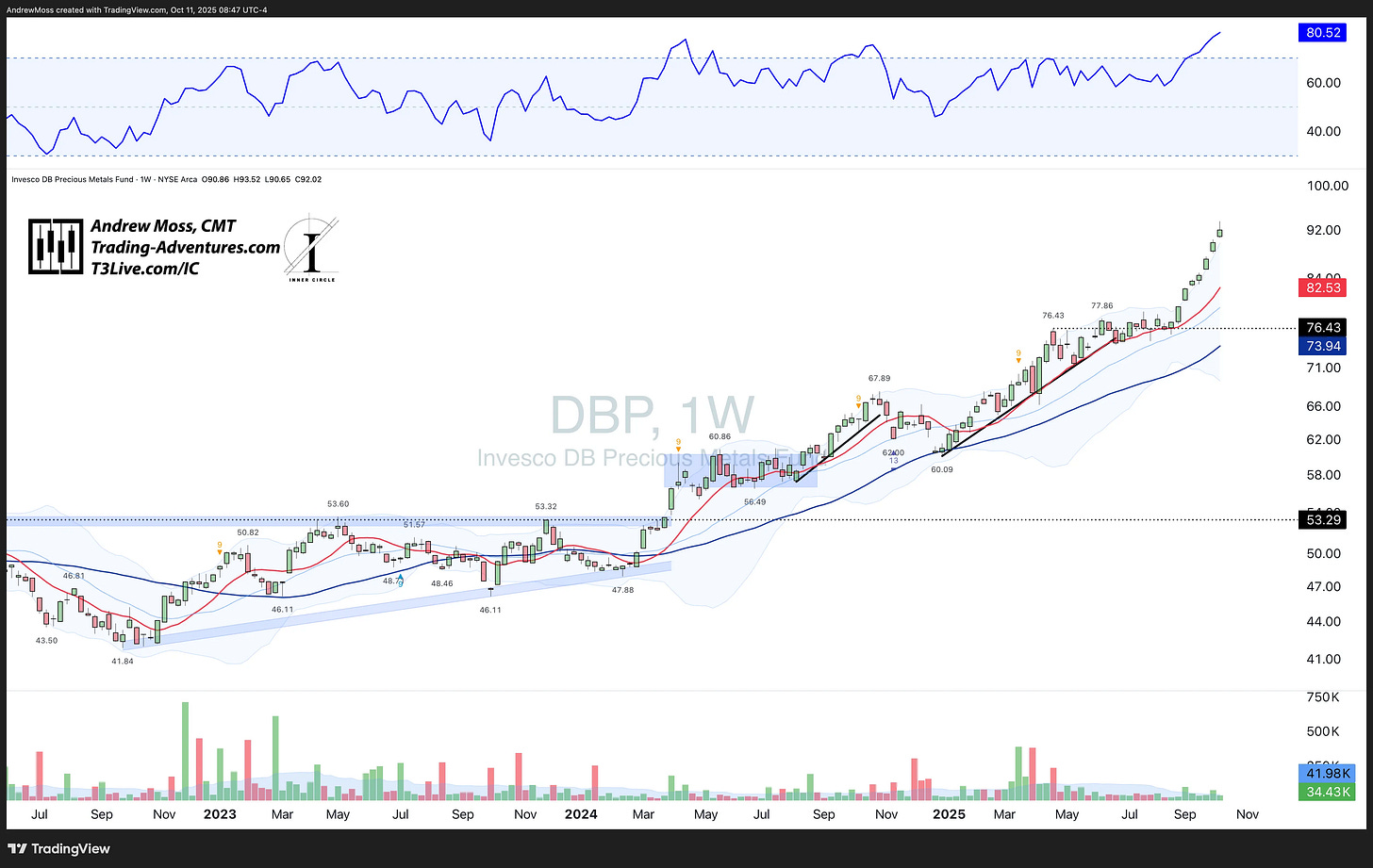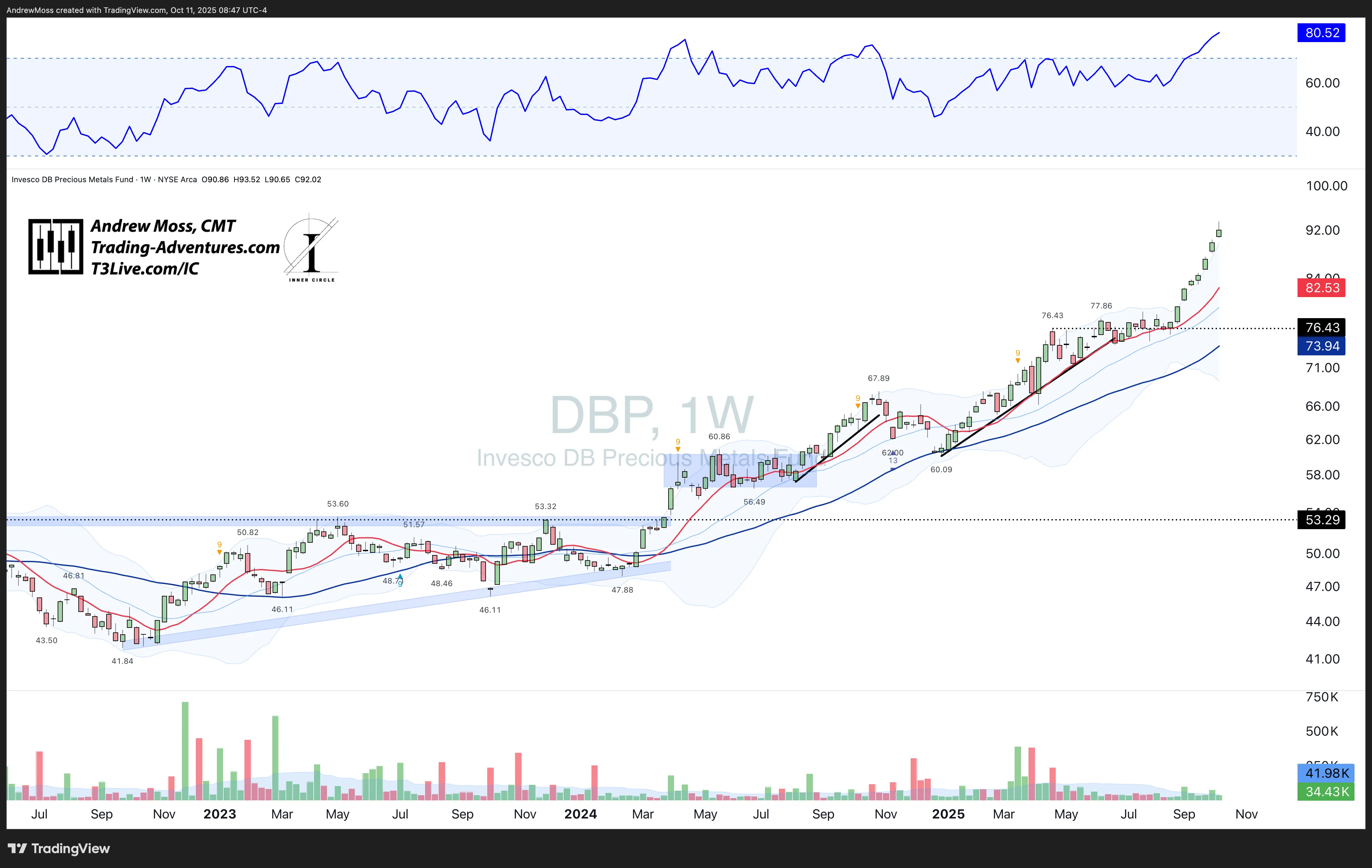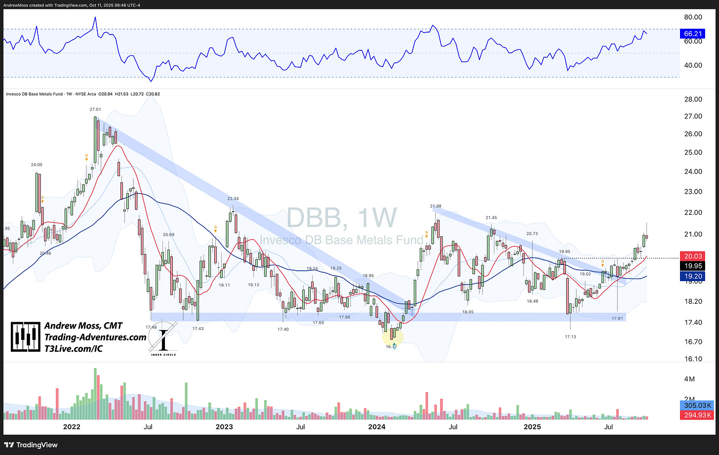 DBB (Base Metals) had strength that faded a bit by the end of the week.
