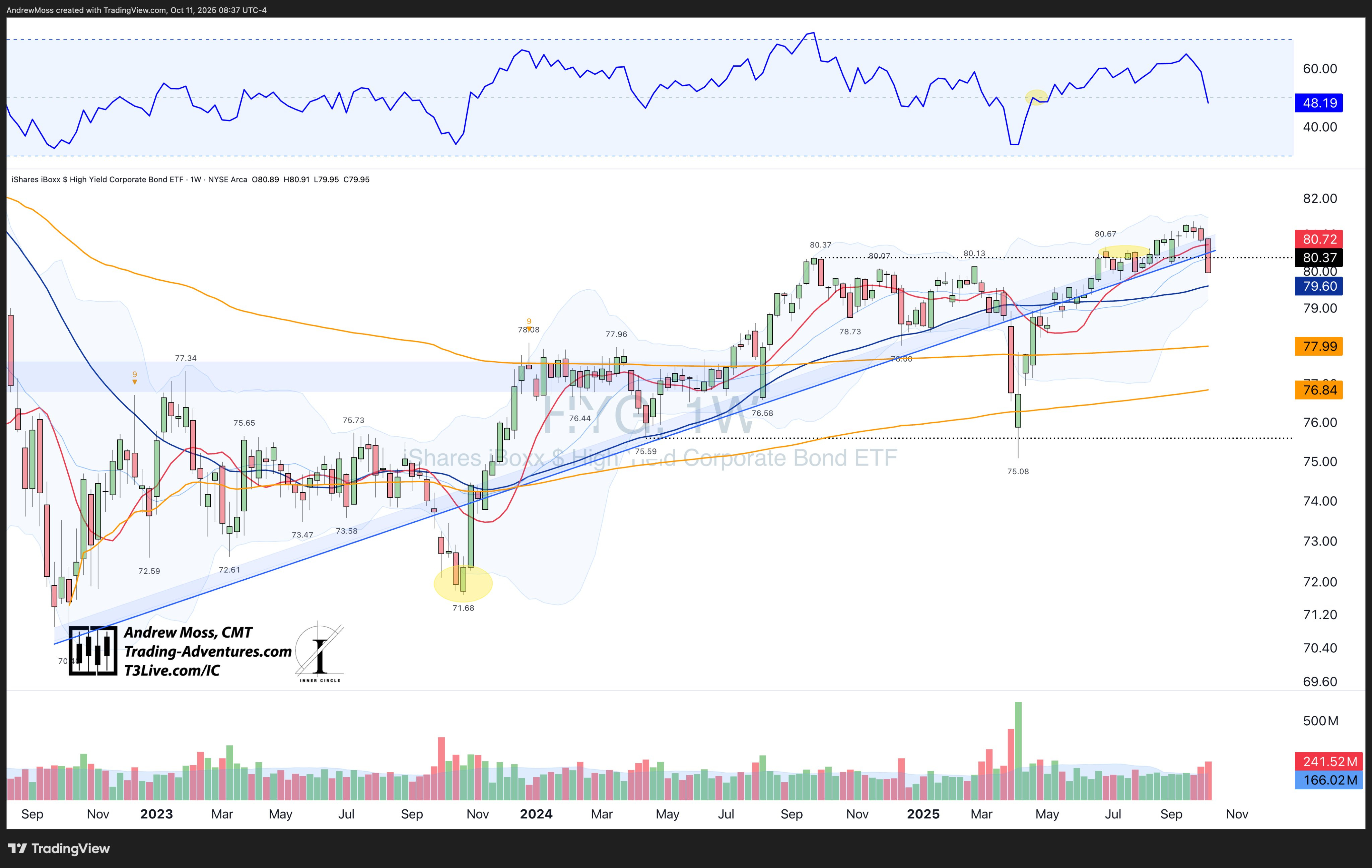 Bonds (AGG / TLT / HYG): Quality bonds (AGG, TLT) held up well while highâyield credit (HYG) sold off alongside equities â not unexpected given the sharp shift in sentiment. Relative strength in Treasuries shows some early signs of defensive positioning.