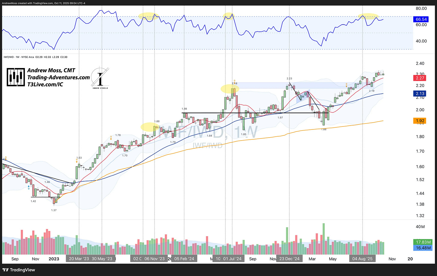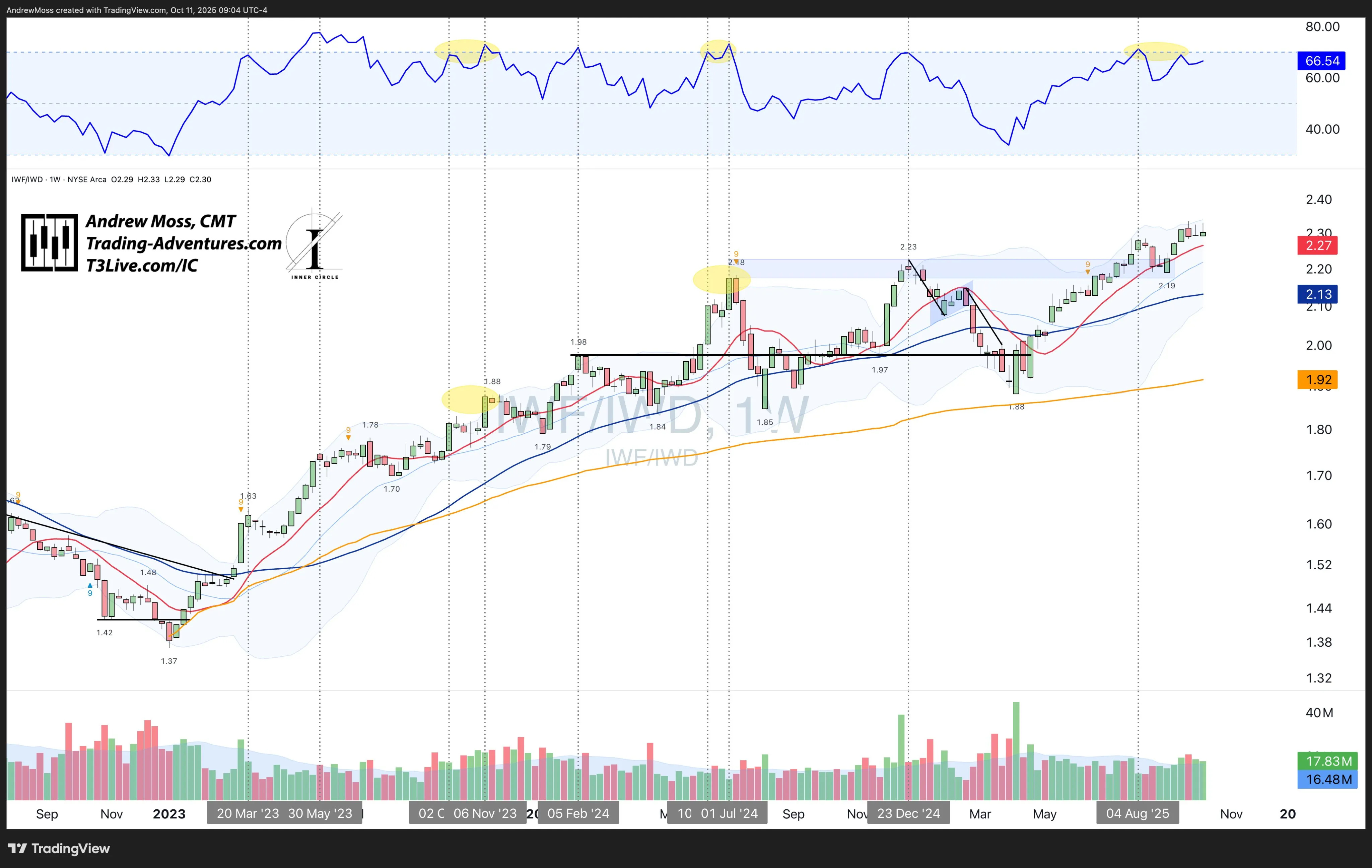 IWF / IWD - Still a positive week, but no real movement in either direction. So far, this just looks like a rest period.