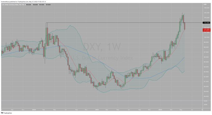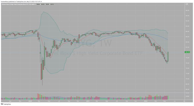 HYG — High-yield bonds had quite a week. It hasn’t put in a green candle this big since the Covid low. Growing risk appetite in the bond market is usually good for stocks too.