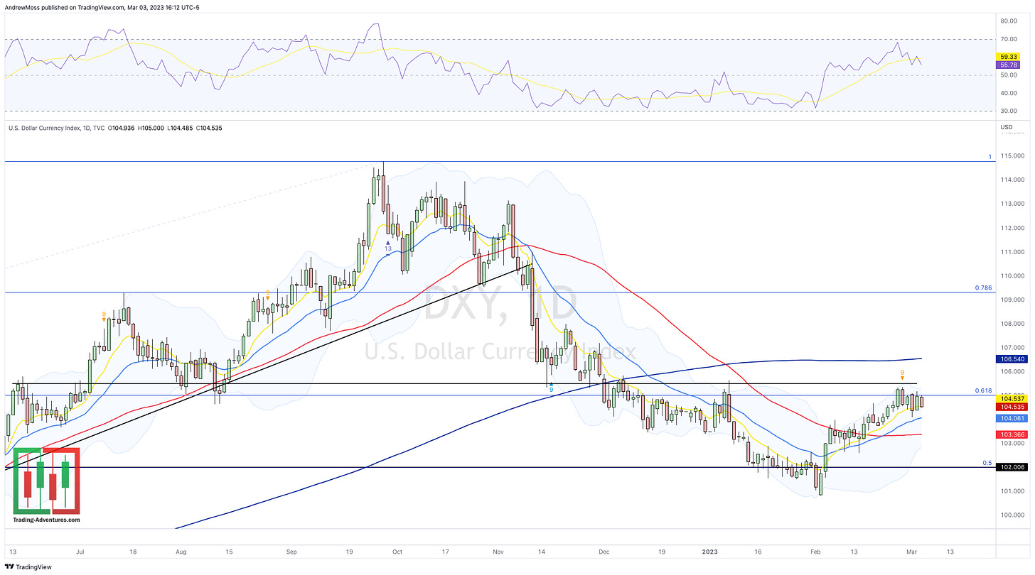 DXY - The Dollar is stubborn as each dip keeps getting driven back higher.