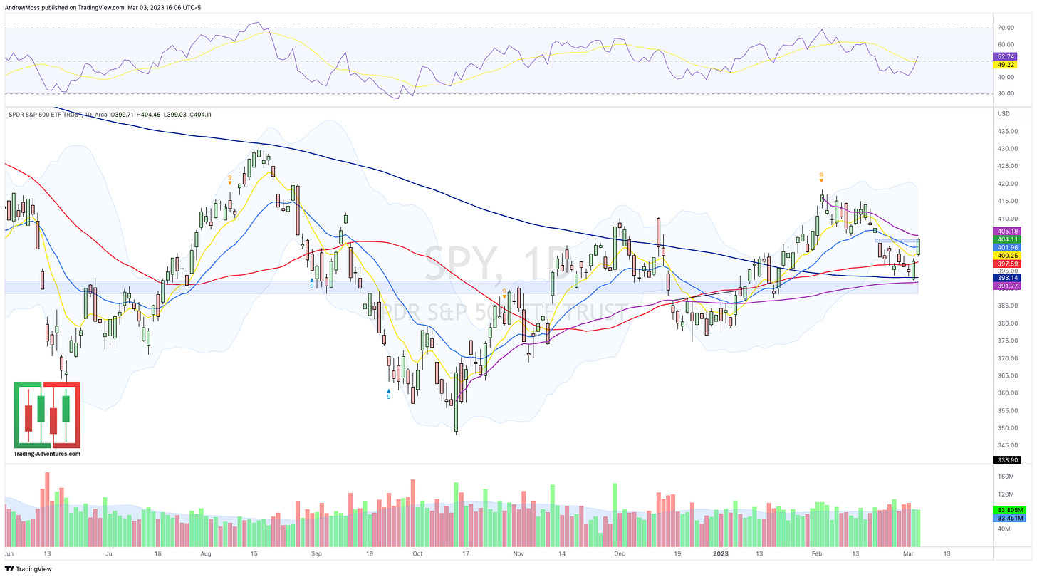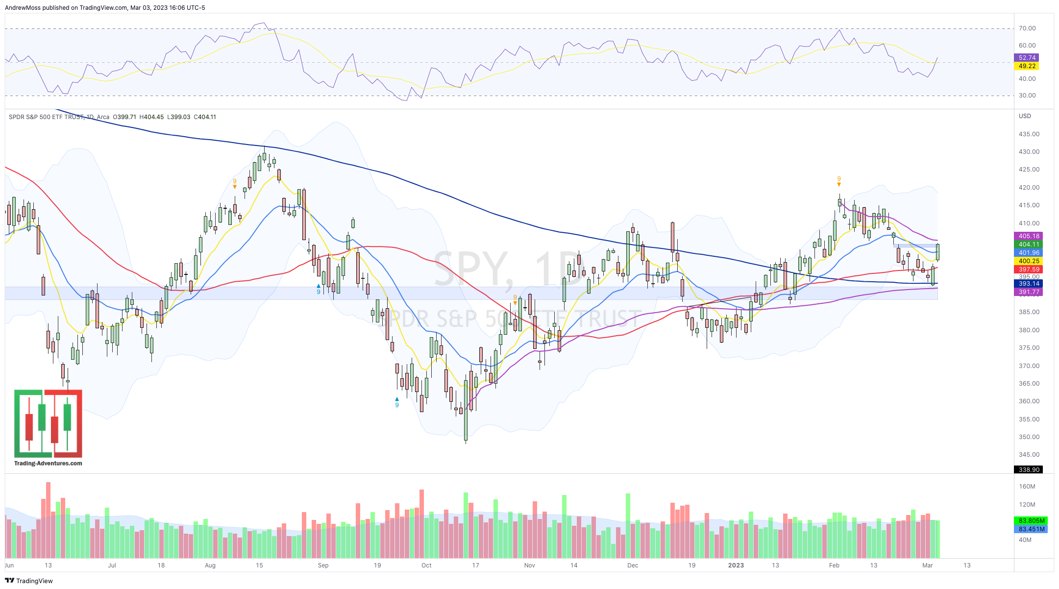 Now watch 403-404 as potential resistance, followed by the swing high anchored VWAP above 405, and then the swing high itself around 417.